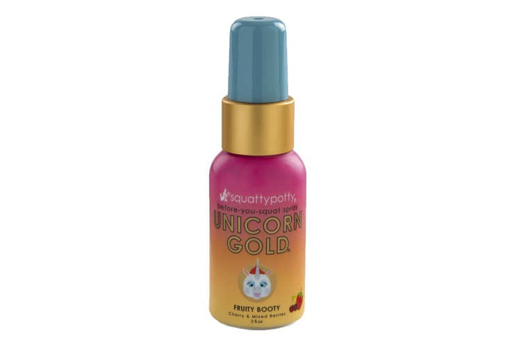Squatty Potty nổi tiếng với chiếc ghế kê chân lúc ngồi bồn cầu bệt giúp bạn đi vệ sinh dễ dàng và thuận với tự nhiên hơn. Bên cạnh đó, hãng cũng có sản phẩm xịt bồn cầu chống mùi hôi với tên gọi rất lấp lánh "Unicorn Gold". Theo lời hãng, sản phẩm này chứa các tinh thể vàng nano thật giúp loại bỏ mùi hương không ai mong muốn.