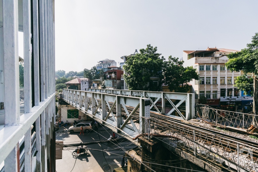 Khung cửa sổ với kính trượt trong suốt cùng tấm mành có thể điều chỉnh ánh sáng tự nhiên vào nhà. Từ khung cửa sổ có thể ngắm nhìn vẻ đẹp bình yên của phố phường, nét đẹp cổ kính của khu phố Hàng Lược.
