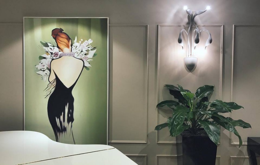Điểm nhấn của không gian với cây xanh và tranh treo tường cùng những mảng sáng nghệ thuật tinh tế từ ánh sáng.