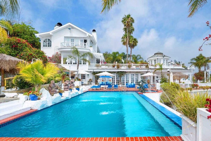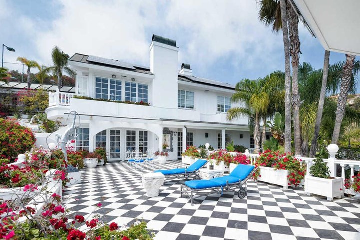 Căn biệt thự được thiết kế theo lối kiến trúc Ý, nhìn ra biển Thái Bình Dương thơ mộng, có 8 phòng ngủ, 8 phòng tắm và một bể bơi lớn nước nóng. Ngoài ra, nơi đây còn có thác nước và cả bể cá koi xinh xắn. Không chỉ vậy, căn biệt thự nguy nga này còn có phòng chiếu phim, phòng tập thể dục hiện đại, sân tennis tràn ngập ánh sáng cũng như một nhà 2 tầng dành cho khách. Cách ngôi biệt thự không xa là bãi biển riêng của cặp đôi.