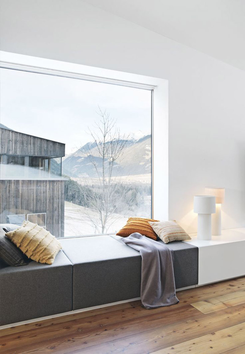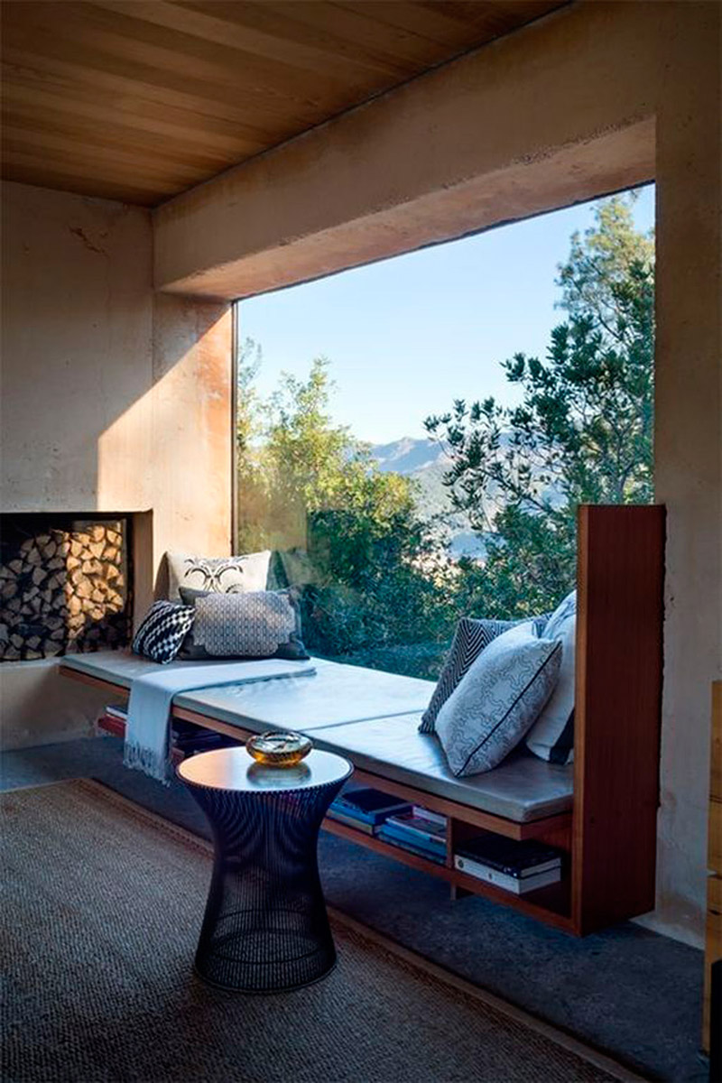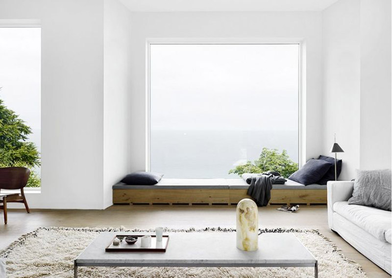 Một chỗ ngồi vừa đủ bên cạnh khung cửa sổ kính cỡ lớn chính là công thức làm nên góc đọc sách lý tưởng với mọi người.