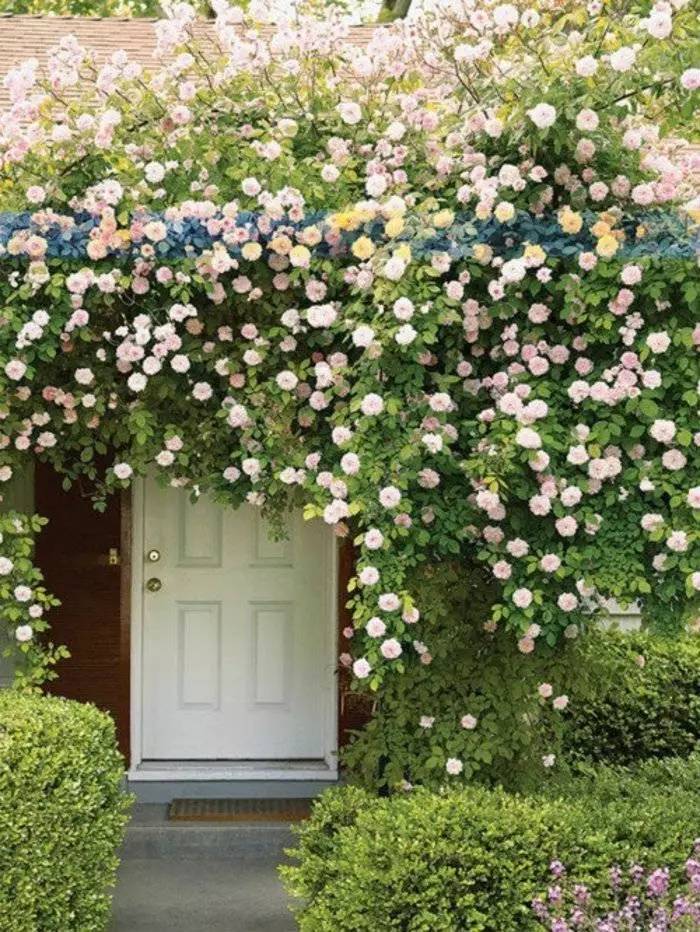 Khoảng sân hay góc vườn bé nhỏ, lối đi vào nhà hay lối dạo trong vườn đều sẽ đẹp xinh ngất ngây khi có sự hiện diện của một khóm hồng.