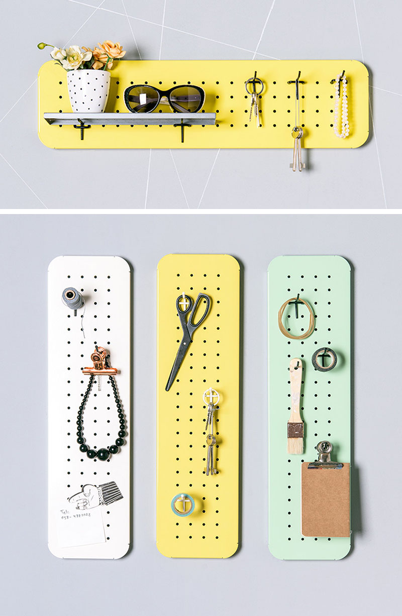 Những chiếc bảng đục lỗ đang là món đồ dùng để lưu trữ hữu ích nhất trong không gian mỗi gia đình khi mà bạn có thể dùng nó ở mọi nơi từ phòng bếp, phòng khách đến lỗi hàng lang như thế này với kích thước phù hợp với nhu cầu sử dụng.