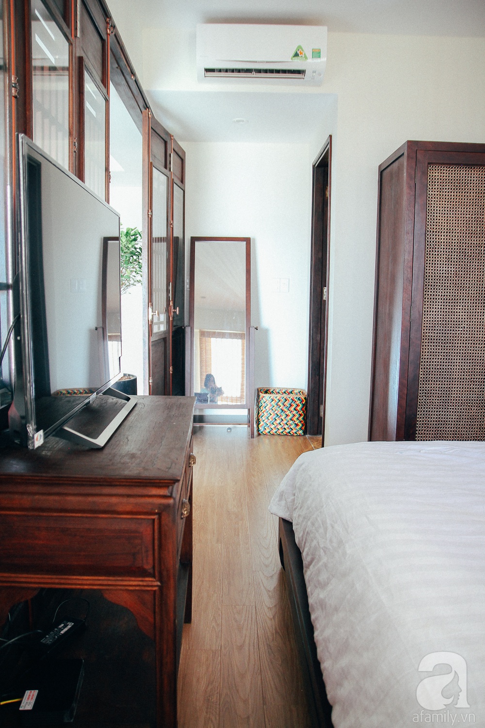 Không gian nghỉ ngơi được bố trí với đầy đủ nội thất cơ bản như bàn đặt ti vi, giường ngủ bằng gỗ, vài vật dụng cần thiết là đủ để tạo nên không khi yên bình và ấm cúng.