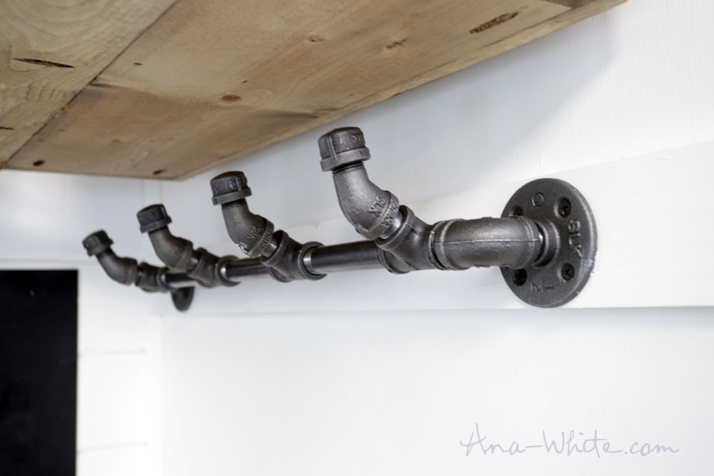 Điểm đặc biệt nhất trong ngôi nhà này là ở chỗ chiếc giường ngủ và bàn uống nước. Ana White tính khi làm chiếc giường trên cao thì sẽ tốn khoảng không gian để làm cầu thang mà chiếc giường lại bị cố định ở một chỗ. Vậy nên cô nghĩ ra ý tưởng buộc 4 chiếc dây ở 4 góc và dùng hệ thống ròng rọc để di chuyển lên xuống. Vậy nên khi cần chỉ cần bấm nút là giường sẽ hạ xuống. Còn khi nó nâng lên là ở dưới có bàn uống nước, hoặc di chuyển một chút lại trở thành chiếc giường ngủ cực tiện lợi và tiết kiệm không gian.