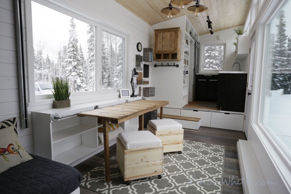 Chị Ana White và chồng Jacob đều lớn lên ở xứ tuyết Alaska (Mỹ). Khi mới kết hôn, cả hai muốn xây cho mình một tổ ấm nhỏ, xinh xắn và phù hợp với điều kiện thời tiết vùng khí hậu cận bắc cực. Họ bắt đầu xẻ những tấm gỗ và thiết kế ngôi nhà phù hợp với sở thích của bản thân. Kể từ đó, cặp vợ chồng này bắt đầu nổi tiếng và nhận được đơn đặt hàng thiết kế ngôi nhà nhỏ xinh nhưng đầy đủ tiện nghi, ấm cúng.