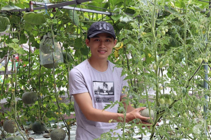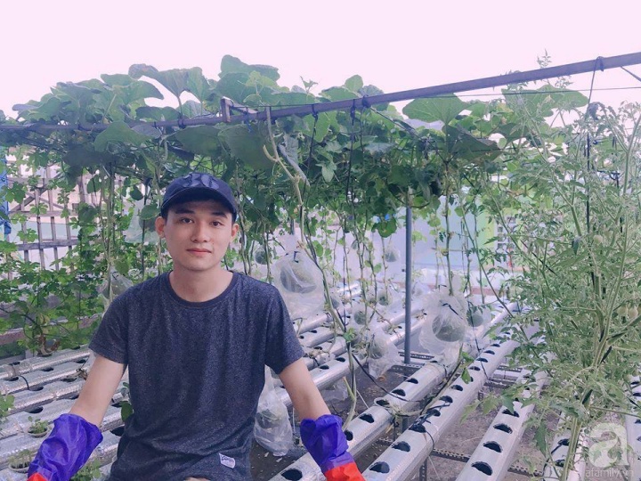 Chàng trai trẻ Hoàng Quốc Thịnh (sinh năm 1996, Quy Nhơn) hiện đang là sinh viên chuyên ngành Tài chính Ngân hàng. Vốn yêu thích cây cối, đam mê làm vườn, sẵn có khoảng sân thượng của gia đình, Quốc Thịnh áp dụng mô hình thủy canh để trồng đủ loại rau xanh, các loại quả như dưa lưới, dưa chuột, rau cải, rau mồng tơi, rau đay, dền... và các loại rau gia vị.